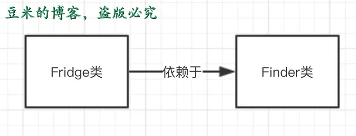 结合上面的例子和实际应用,我们的IoC便是要处理这样的耦合。我们借助容器的概念,将类的创建和查找都放在容器中实现,Fridge类不用关心Finder类的创建,只需要向容器要求使用Finder类,其他的一概不care,这样就将实体类(concrete class)与抽象类解耦掉,改造之前如图所示: