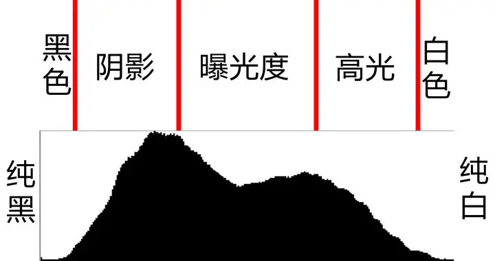 要理解直方图,绕不开“亮度”这个概念。人们把照片的亮度分为0到255共256个数值,数值越大,代表的亮度越高。其中0代表纯黑色的最暗区域,255表示最亮的纯白色,而中间的数字就是不同亮度的灰色。人们还进一步把这些亮度分为了5个区域,分别是黑色,阴影,中间调,高光和白色。