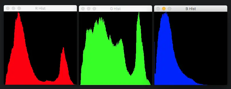 channels = cv2.split(img)# RGB - R G B