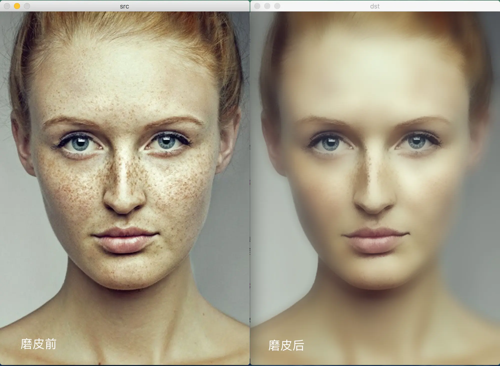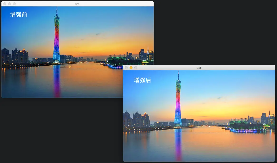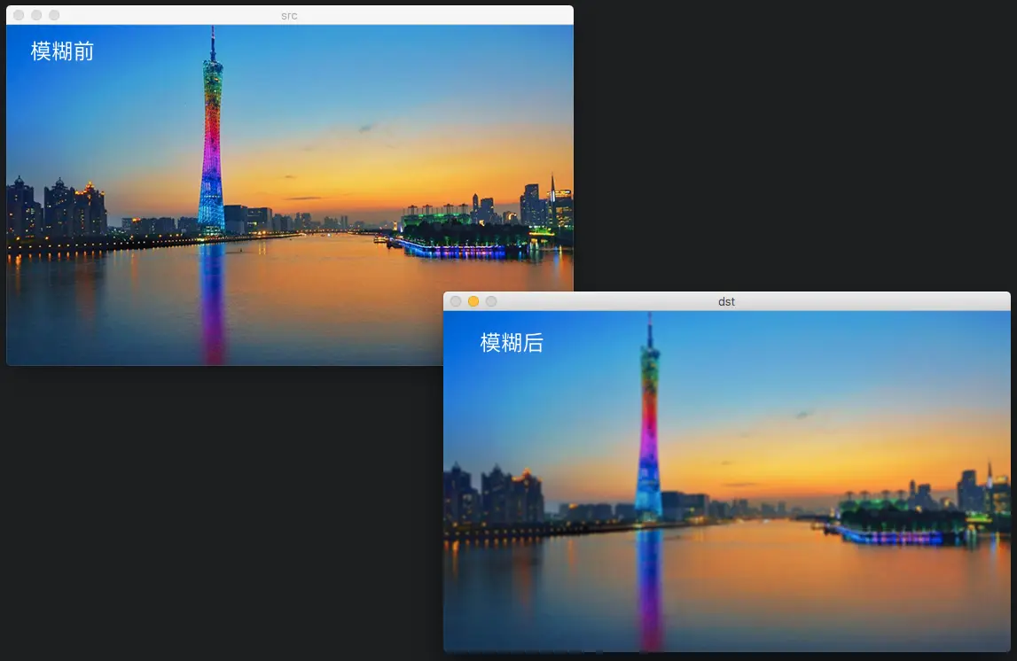- dst,即目标图像,需要和源图片有一样的尺寸和类型。比如可以用Mat::Clone,以源图片为模板,来初始化得到如假包换的目标图。