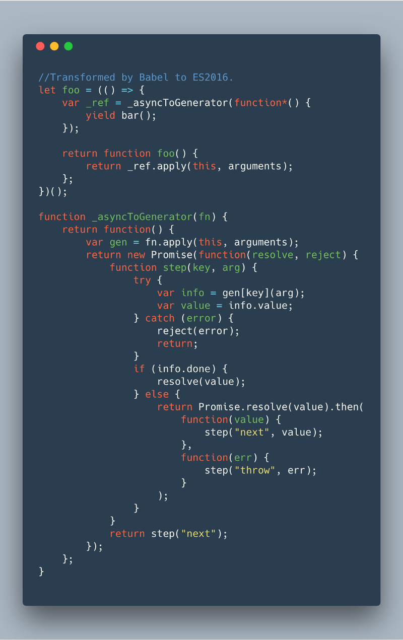 后,在你阅读或调试转换后的代码能派上很大用场。比如,这是一个简单的async