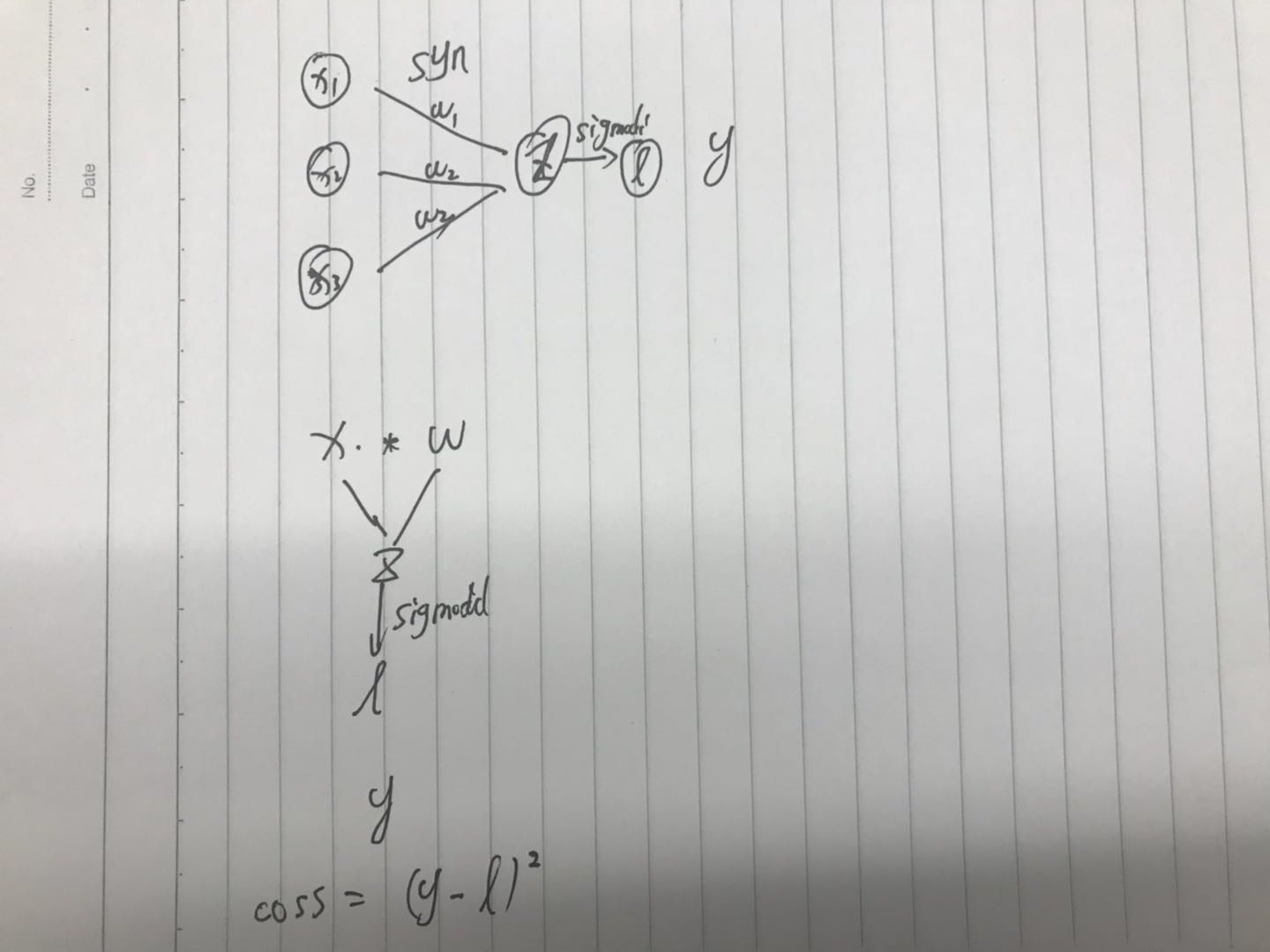 计算l的目标值y的误差。训练的目标为将误差最小化,因此可以通过调节输入x和权重w。因为x为输入数据,不可以调节。因此目标为:通过不断的调节权重w,使其得到的预测值与目标的值的误差最小(或者小于某个阈值),完成训练。可以使用权重w对新的输入进行预测。