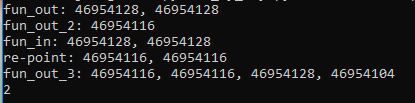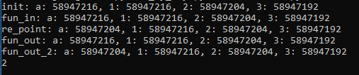 print("fun_out_3: %s, %s, %s, %s" %(id(a), id(2), id(1), id(3)))