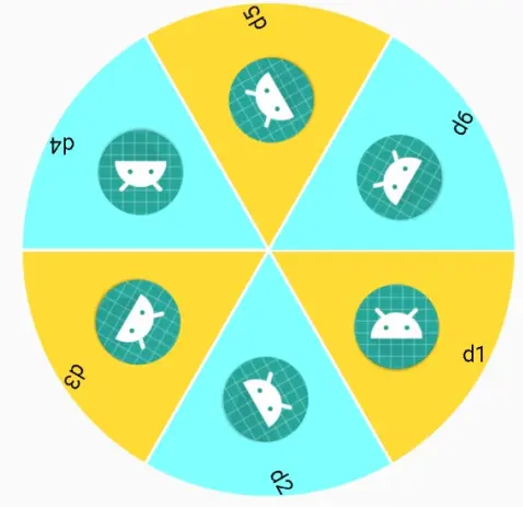 从上面的操作中我们可以把这个图给画出来了,那我们要怎么让它旋转呢,很巧的是Android里面正好有一个东西能很好的实现这个效果,也很符合这个思想,叫属性动画。 做法也很简单,我就直接贴代码了