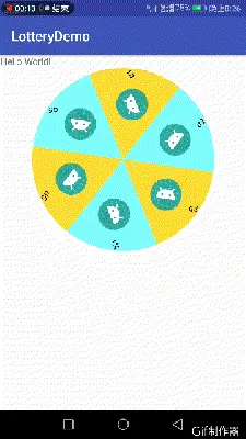 看了源码后我们来看看怎么去创建这个View,这里我命名DiskView而不是LotteryView是因为它只是一部分,而且其它功能也可以使用这个View,先不多说,先看看效果。 要实现上面图中的那种效果,可以在使用的地方调用