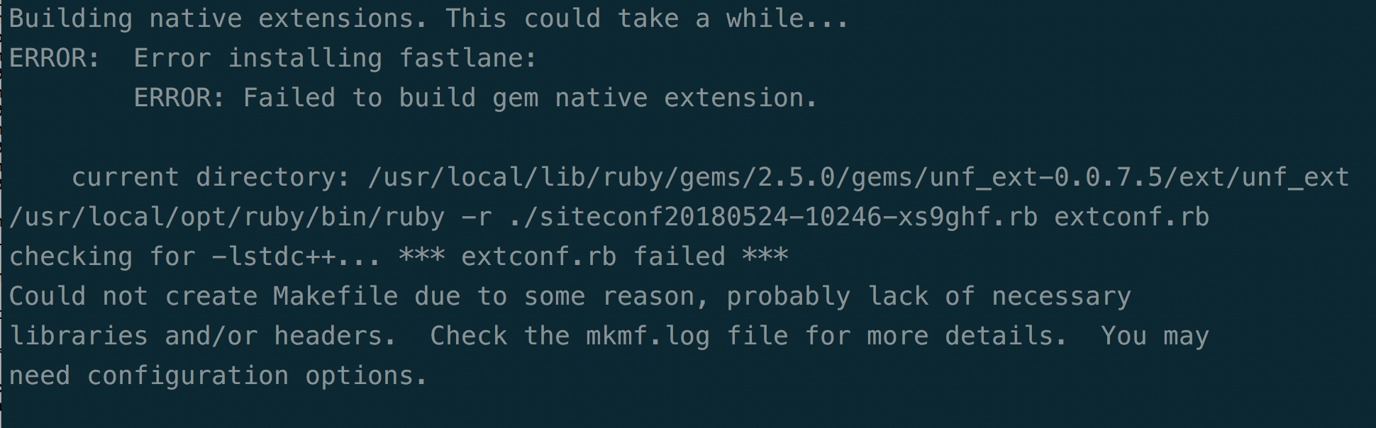 最近做新项目,因为将来会涉及到频繁打包去测试。为了提高打包效率,决定使用下fastlane。按照流程先来安装。结果不出意料的报错了。