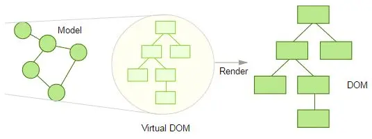 而VirtualDOM的主要思想就是模拟DOM的树状结构,在内存中创建保存映射DOM信息的节点数据,在由于交互等因素需要视图更新时,先通过对节点数据进行diff后得到差异结果后,再一次性对DOM进行批量更新操作,这就好比在内存中创建了一个平行世界,浏览器中DOM树的每一个节点与属性数据都在这个平行世界中存在着另一个版本的虚拟DOM树,所有复杂曲折的更新逻辑都在平行世界中的VirtualDOM处理完成,只将最终的更新结果发送给浏览器中的DOM树执行,这样就避免了冗余琐碎的DOM树操作负担,进而有效提高了性能。