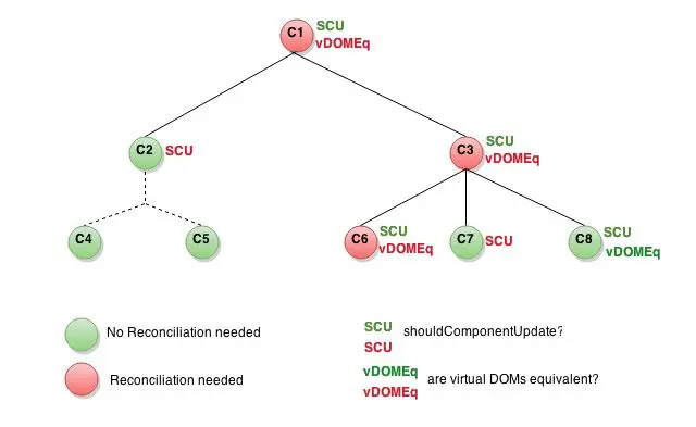 正如react官方文档中描述的一样,当一个节点需要被更新时(shouldComponentUpdate),下一步则需要对它及其子节点进行shouldComponentUpdate判断与Reconcile的过程来对节点进行更新,这里我们可以通过在组件中写入覆盖的shouldComponentUpdate函数来决定是否进行更新的逻辑: