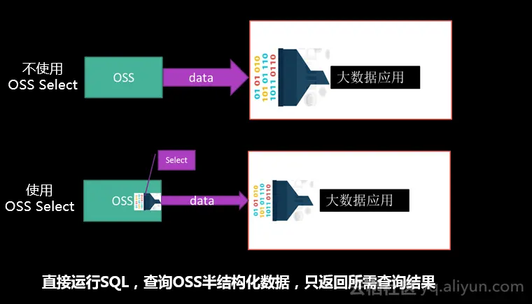 OSS重磅推出OSS Select功能,可以直接使用简单的SQL语句,从OSS的文件中选取所需要的内容