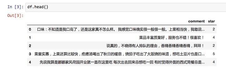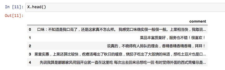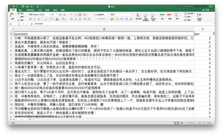 整理好之后的评论数据,如下图所示。