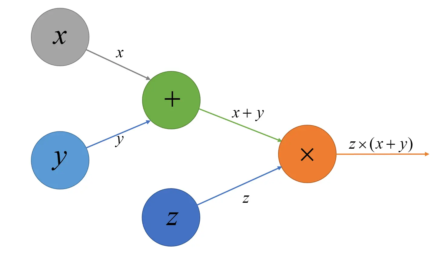 计算图是计算代数中的一个基础处理方法,我们可以通过一个有向图来表示一个给定的数学表达式,并可以根据图的特点快速方便对表达式中的变量进行求导。而神经网络的本质就是一个多层复合函数, 因此也可以通过一个图来表示其表达式。