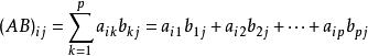 设A为m×p的矩阵,B为p×n的矩阵,那么称的矩阵C为m×n矩阵A与B的乘积,记作C=AB,其中矩阵C中的第i行第j列元素可以表示为: