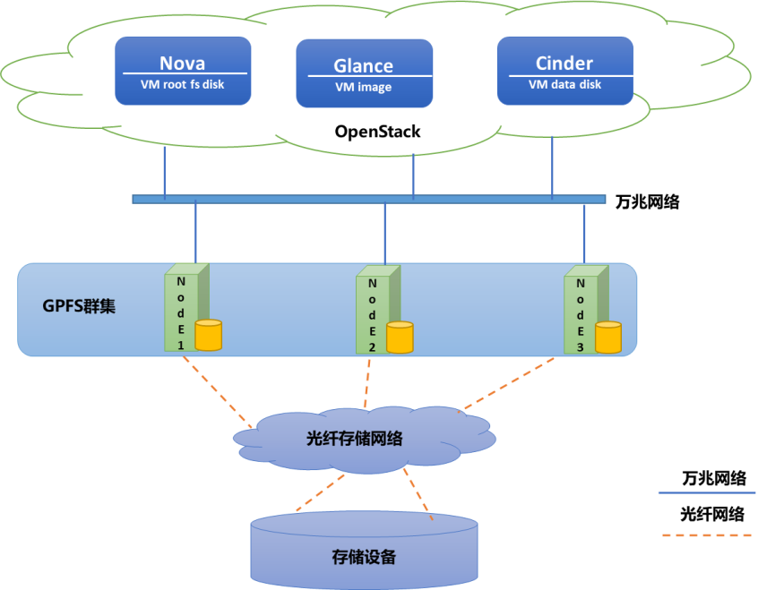 - 在本文中,我们将采用以上架构设计完成 Spectrum Scale 对 OpenStack 云平台的融合。