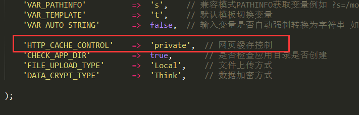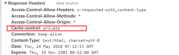 可以看到,Thinkphp 3.2 默认的Cache-control 为 private
