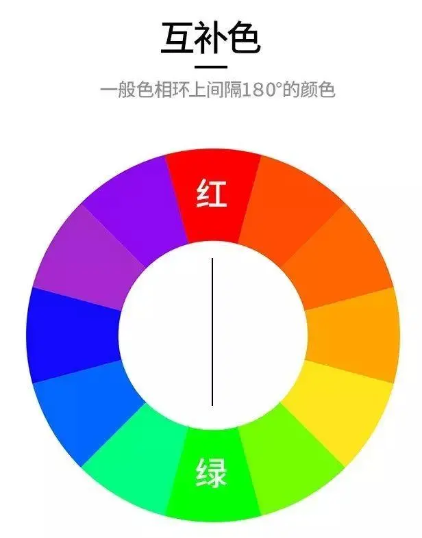 互补色:红+绿、黄+紫、橙+蓝...