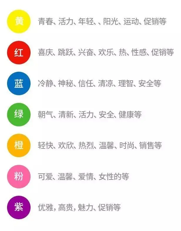 其实没一个颜色给人的感觉也是完全不一样的,每一种颜色也都在向我们表达着不一样的情感,我们可以简单的做下总结: