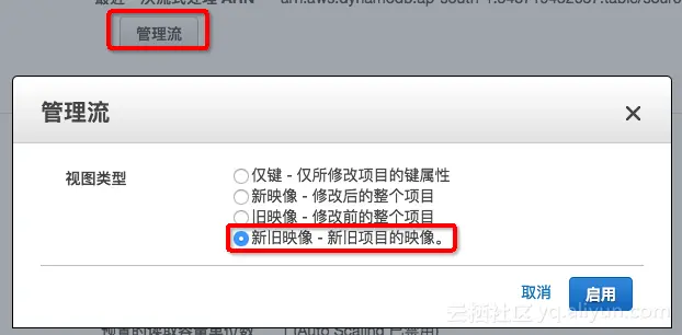 Stream模式需要为: 新旧映像 - 新旧项目的映像