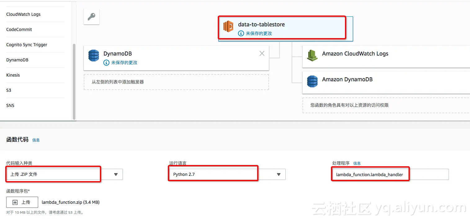 使用的函数zip包为:lambda_function.zip 点击下载 可以直接本地上传,也可以先上传到S3。