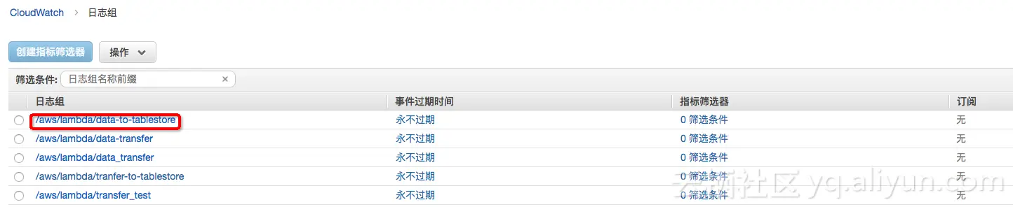 Lambda 运行的日志都会写入到 CloudWatch 中,在 CloudWatch 选择对应的函数名,则可以实时查询到 Lambda 的运行状态。