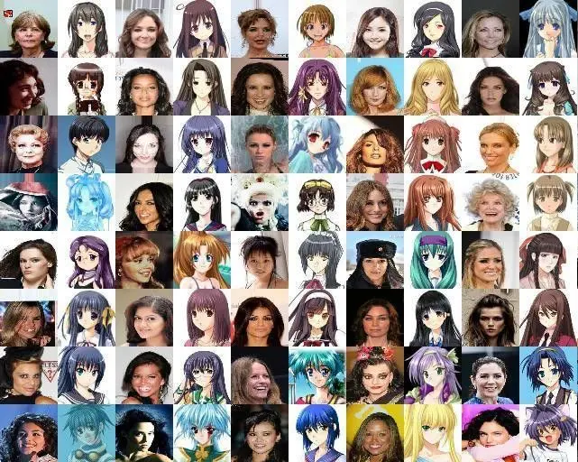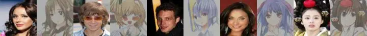 不理想的地方也在这张图中一目了然,有些时候它会把背景也当作头发的颜色来利用(如左下角),还有些时候他会把人的朝向弄反,这些错误在图片转换的时候也能见到。