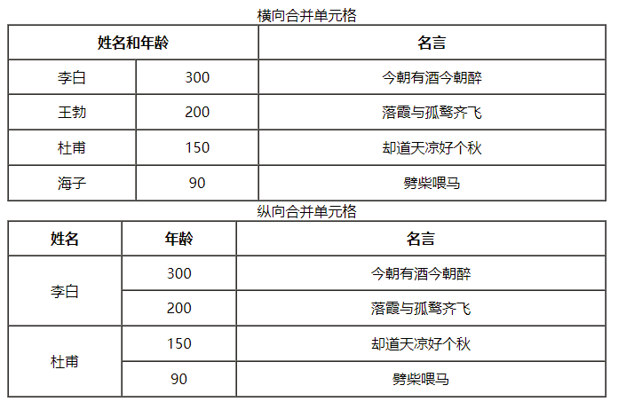 <th colspan="2">姓名和年龄</th> <th>名言</th>