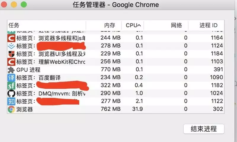 进程可能包括主控进程,插件进程,GPU,tab页(浏览器内核)等等。