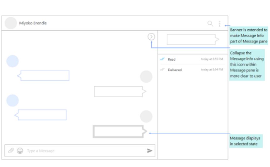 在“Message Info”窗格中,显示消息状态的区域与消息窗合并了。同时,也没有清楚的展现出用户正在看的状态是哪条消息的。此外,用户需要花费时间在“Message Info”区域顶部找到“关闭”图标。