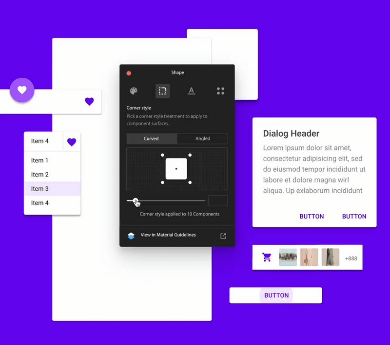 从弯曲或切割的边角样式中进行选择,并自动将更改应用于全部组件;