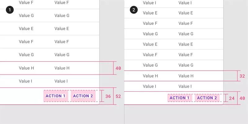 Material Design 默认使用低密度空间,但在提高用户体验时提供高密度空间。