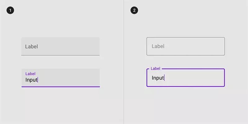 这两种类型的文本字段都使用容器来为交互提供明确的提示,使得文本框在页面中容易被发现。