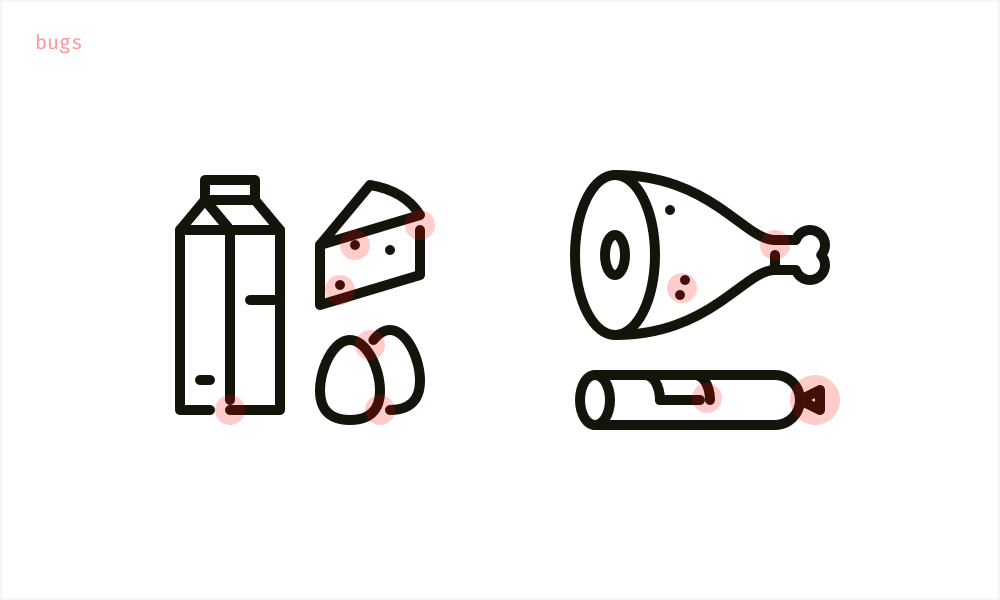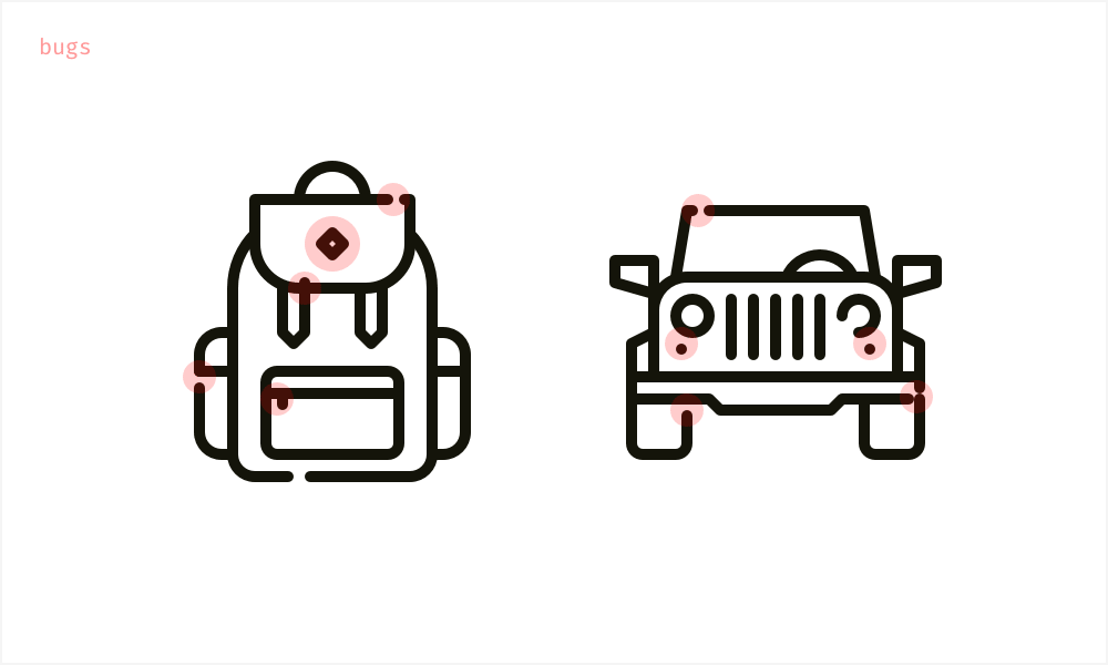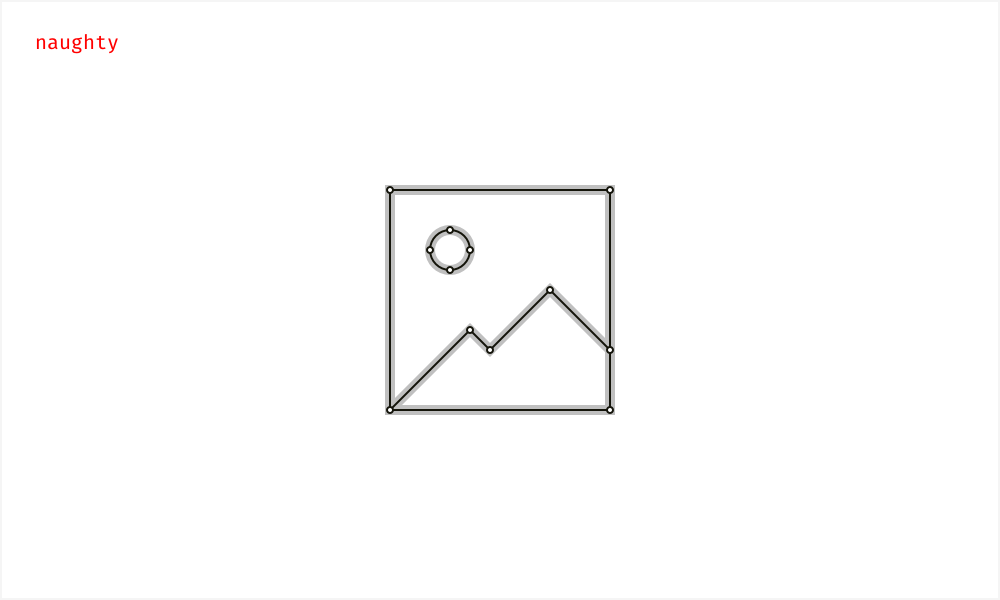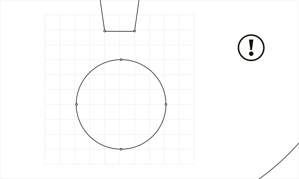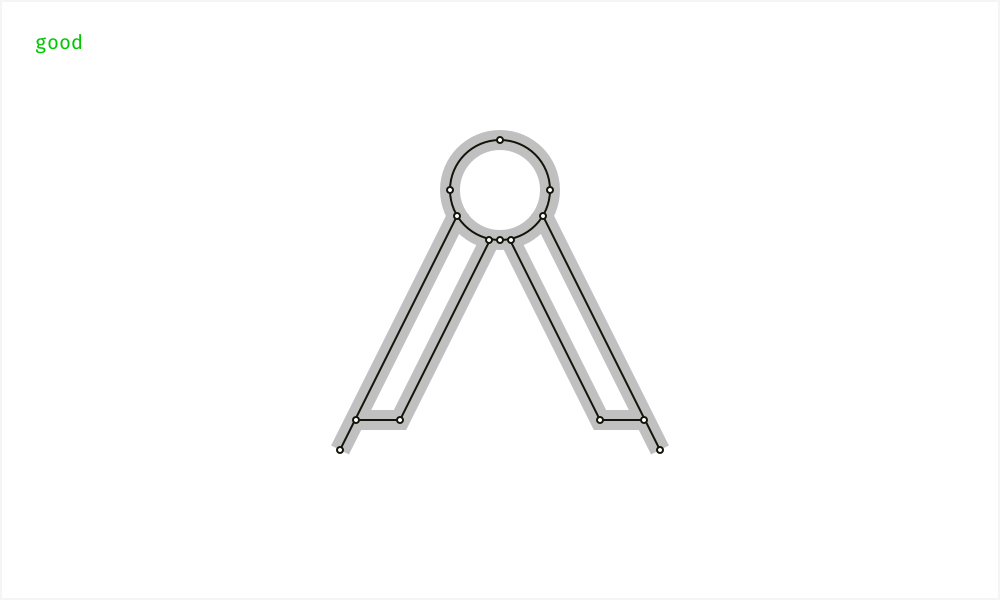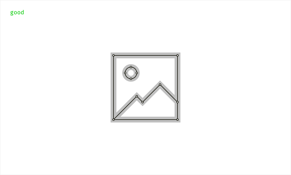 我们的目标不是做到完美,也不需要为了画完美的线条而画出一条完美的线条。但这对于最终产品中正确的,而不是扭曲的图标渲染是很重要的。永远记得尽量使用最少的形状锚点绘制图标,并保证相邻元素间没有空隙。