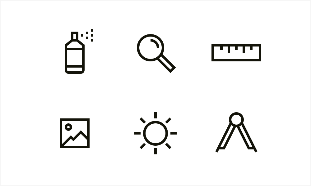 和网格对齐,并给线形图标2个像素的线宽度,可以让图标在非retina屏幕上也很清楚。2像素中心对齐的边框可以保证足够的厚度和清晰的轮廓。