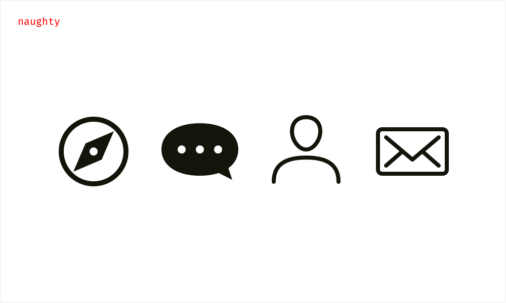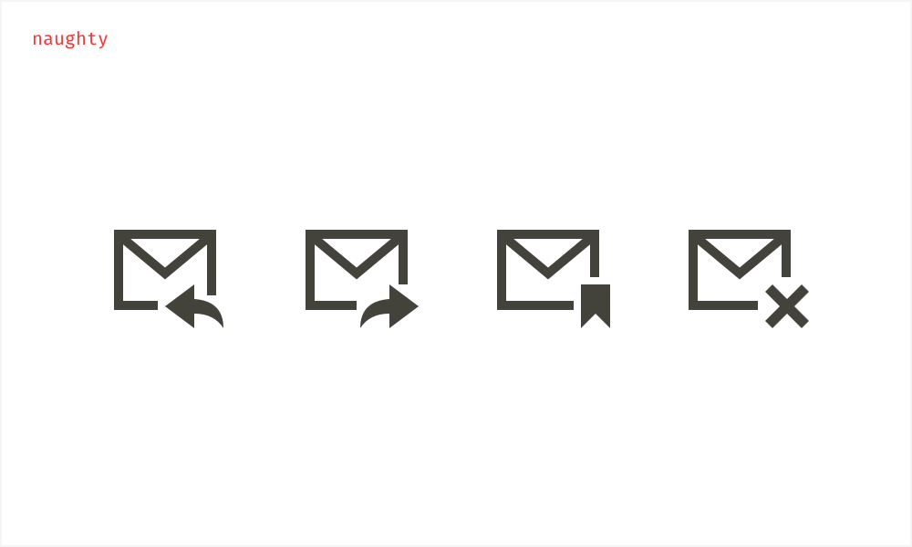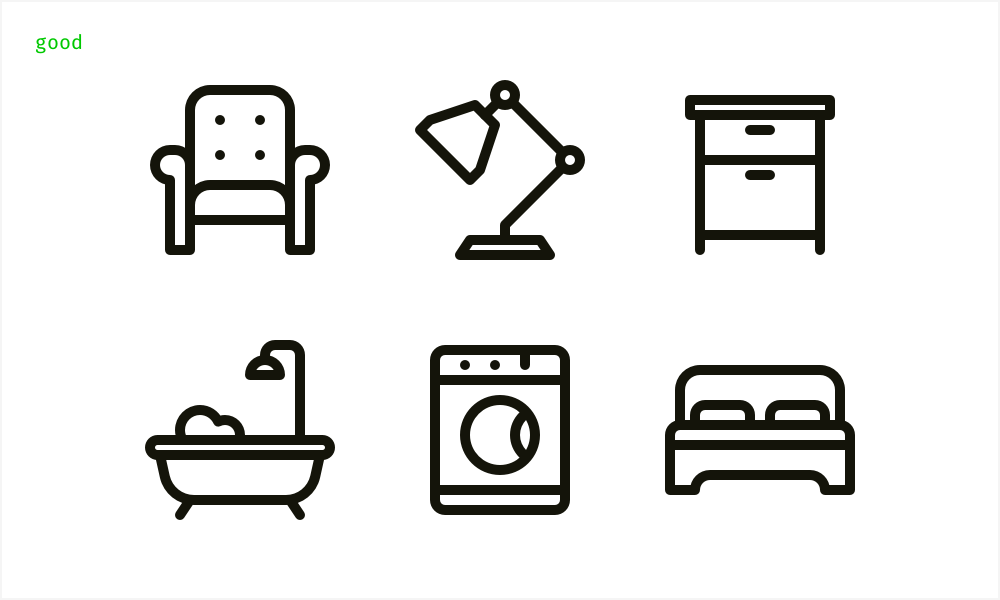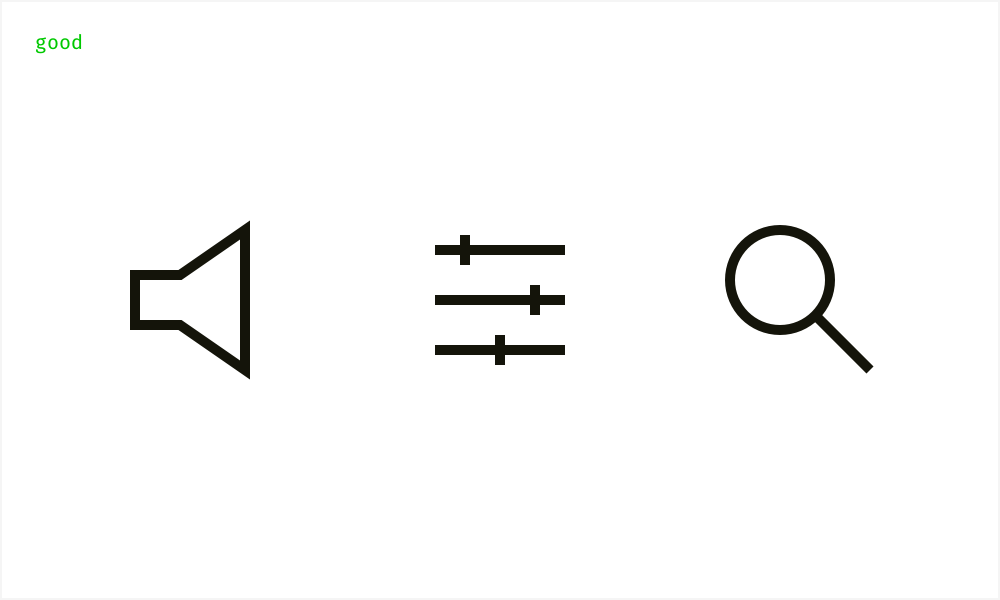 不要在一套图标中混合使用侧视图和前视图,让icon保持一致的风格可以帮助用户辨别icon,并暗示用户它们有相同的重要性或者状态。