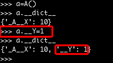 #类中所有双下划线开头的名称如__x都会在类定义时自动变形成:_类名__x的形式: