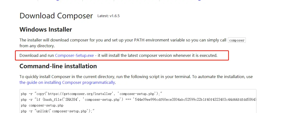 - 安装composer:【下载安装包解压即可】必须安装composer才能安装laravel https://getcomposer.org/download/