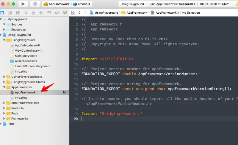 你的应用也许要处理一些预构建的二进制的 pod,它们需要通过头文件将 API 暴露出去。在一些应用中,我使用了 BuddyBuildSDK 来查看崩溃日志。如果你看下它的 podspec,你会发现它使用了一个名为 BuddyBuildSDK.h 的头文件。在我们的应用中,CocoaPods 管理得很好。你所需要做的是通过 Bridging-Header.h 在你的应用 target 中导入头文件。