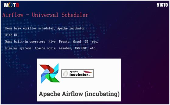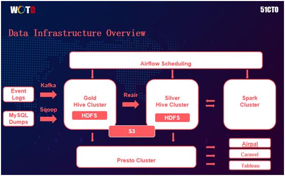 最上面是 Airflow Scheduling,Airflow 是我们公司内部自行开发的一个系统,我们用它去做 schedule job。