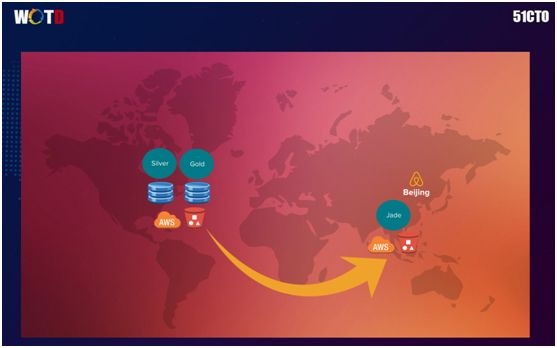我们在亚洲的新加坡有个 Gold 和 Silver Cluster 区域中心,而在中国北京我们用的是 Jade,其结构一模一样,只是在业务上有细微的差别。