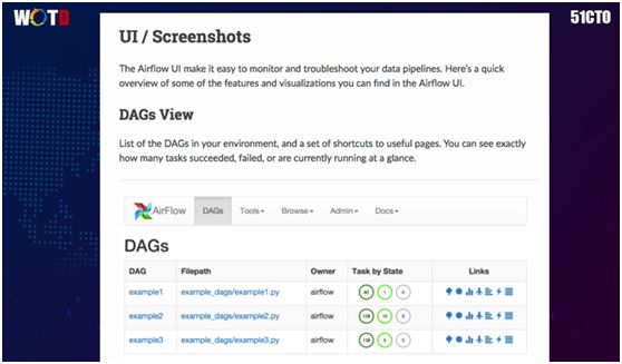 当然,相类似的系统也有:Apache 的 Oozie、Azkaban、AWS 的 SWF 等,但是 Airflow 更好用一些。