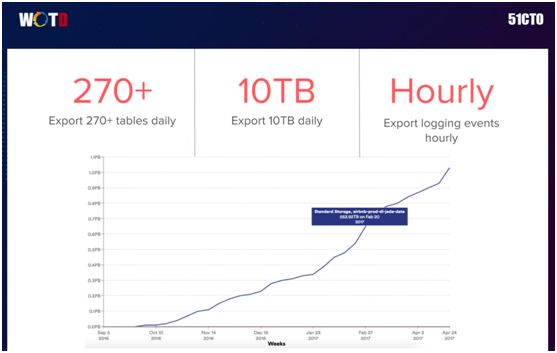 如上图所示,我们实现了按小时输出日志事件、按天输出近 300 张表、10TB 的数据量,这些都归功于我们在全球和中国范围内的大数据整体架构。