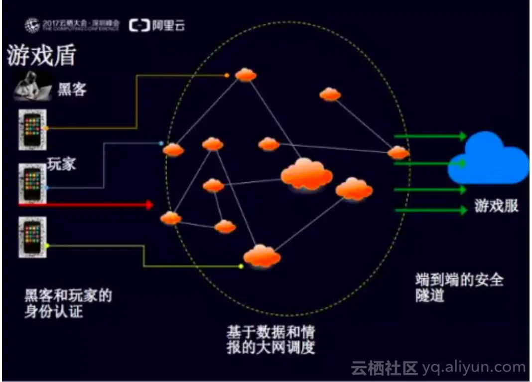 例如游戏行业,我们借助阿里云自研“弹性安全网络”技术,推出了深入游戏业务的解决方案‘游戏盾’ —— 游戏盾独有的“分层而治”的思想,使用端上的秒级调度技术,让黑客在庞大的游戏盾安全大网中找不到攻击的目标,不用储备海量的带宽,也可以让业务的影响降低到很小的地步。(游戏盾的三次技术演进:linux.cn/thread-1653…)