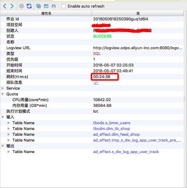 在上面这个例子中两个作业的 SQL 脚本及执行计划完全一致,出于数据安全考虑,此处不粘贴具体 SQL 的内容。
