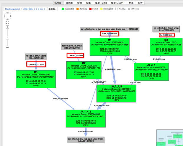 也可以从graph上直接读取输入行数或者字节数(默认展示行数,可在边上右键切换为字节数):