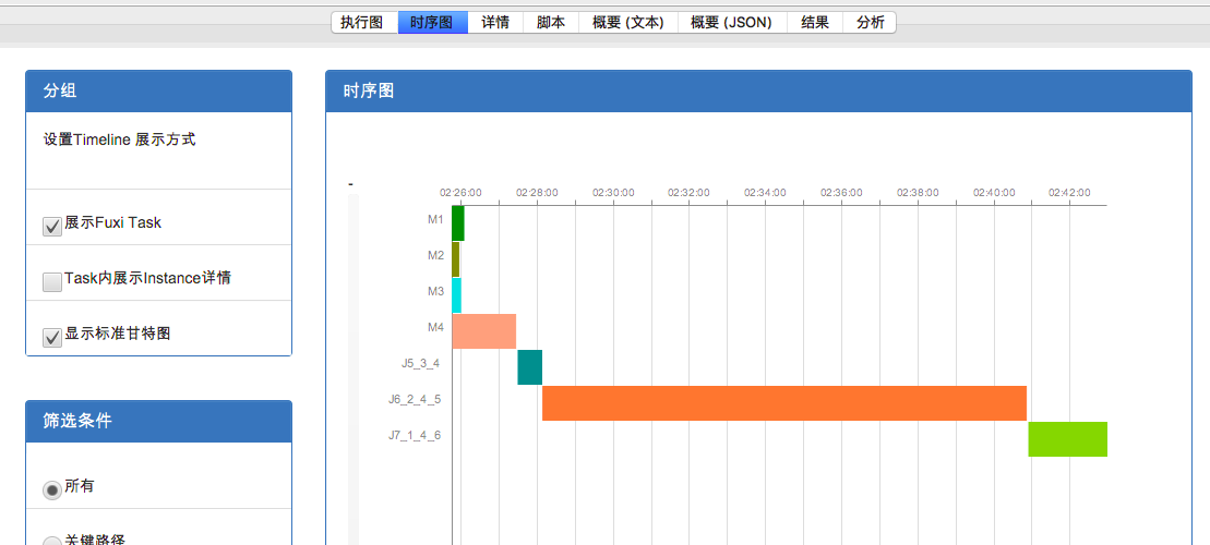 接下来切换到时序图tab,比较两个作业的执行timeline: