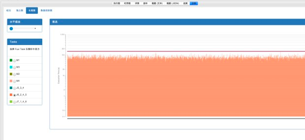 或者转到分析tab下的长尾页面查找长尾节点:注意这个图中的比例尺是以等比而不是等差方式标定的,因此,上面突出的比较长的毛刺就很可能是长尾的实例了。可以通过浮动窗口中的具体信息来判断。 另外 Studio 也提供了诊断的页面,来自动找出超过平均实例执行时间两倍的长尾实例。