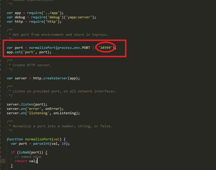 Node.js 的 express 启动及修改访问端口 knightxxj 2018-05-25 6,744 阅读1分钟 Express服务器启动方法: 打开命令行 输入:npm run start / npm run dev 根据package.json的script项的命令选择。 如下图: 找到Express 项目的根目录下的 \bin\www 文件 打开文件,如下图: 将图中红线处修改问自己需要的端口号即可。
