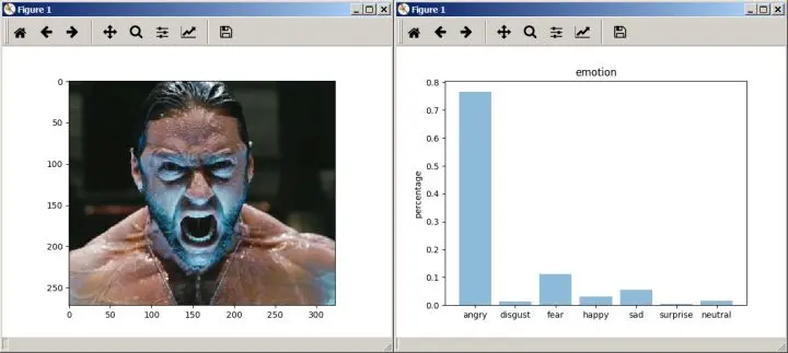 我还想测试一下发怒的表情,提到发怒,休·杰克曼演的“金刚狼”可是个典型,就是他了。我选了《X战警》中金刚狼暴怒的图片。测试结果显示非常成功。