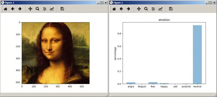 最后,让模型挑战一个高难度的照片:蒙娜丽莎的微笑。至今艺术家们仍没有搞明白达芬奇的画作《蒙娜丽莎》中人物当时的心情。用我们的模型识别后,显示当时蒙娜丽莎的心情非常平和自然。