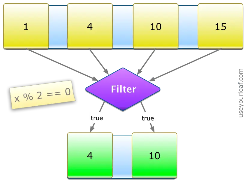 The filter method has a single argument that specifies the include condition. This is a closure that takes as an argument the element from the collection and must return a