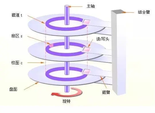 结构比较复杂,但操作系统给封装了,提供了一个叫做逻辑块的方式,你看到磁盘就是有一个个“块”组成的,编号为1, 2, 3, ..n,把指定的块转化成柱面,磁头,扇区, 按照上面说的方法寻道,旋转,读取数据。